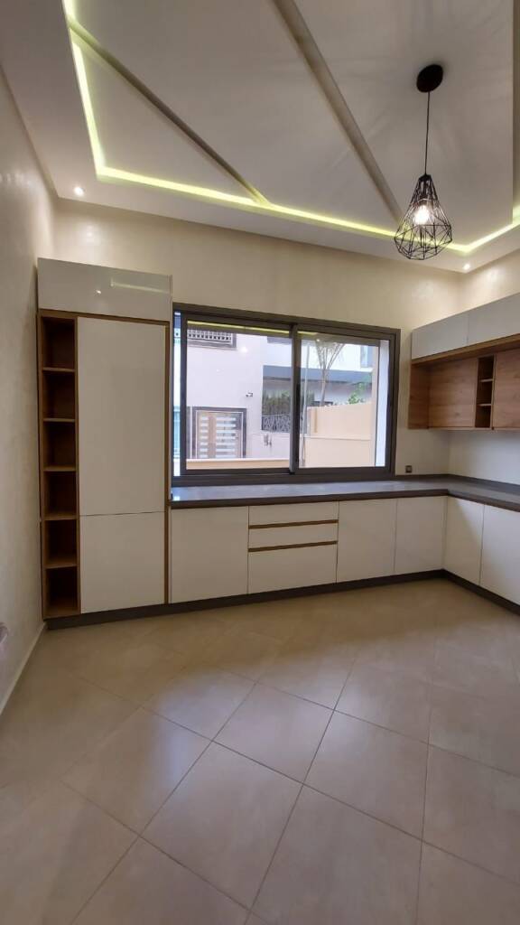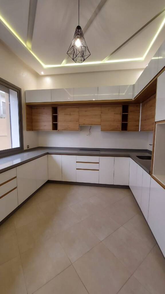 Cette cuisine allie design moderne et fonctionnalité pour créer un espace harmonieux et agréable à vivre. Son agencement en L optimise l’utilisation de l’espace, offrant de nombreux rangements tout en conservant une fluidité de mouvement. Les façades blanches laquées associées aux touches de bois naturel apportent une ambiance chaleureuse et contemporaine. La grande fenêtre inonde la pièce de lumière naturelle, renforçant la sensation d’ouverture et de confort. Un éclairage LED subtil au plafond vient parfaire l’atmosphère, ajoutant une touche d’élégance et de modernité.